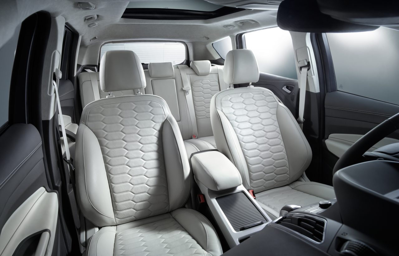 De opnieuw gestylede achterlampen maken de sportieve look af, en er is tevens een nieuwe serie 17″, 18″ en 19″ lichtmetalen velgdesigns met verschillende afwerkingen verkrijgbaar, waaronder Luster Nickel. De gehele serie is verkrijgbaar in twee nieuwe kleuren: Guard Grey en de levendige kleur Copper Pulse. De elektrisch intrekbare trekhaak kan automatisch worden opgeborgen onder de achterbumper. Zo behoudt de Kuga zijn sportieve uiterlijk. Het zorgvuldig samengestelde interieur van de Kuga is verfijnd voor een ergonomischere, stijlvollere en comfortabelere rijervaring voor inzittenden.